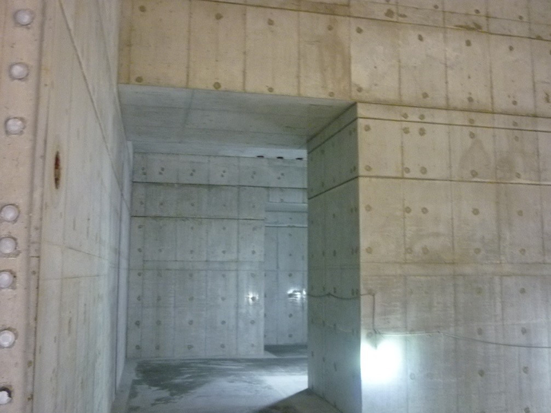 特に重粒子線(放射線)を外部へ漏らさないよう壁厚が最大3mもある難しい躯体工事となりました。