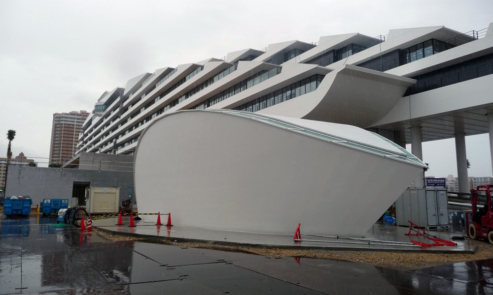 クルーザー船をイメージしてデザインされた湾曲躯体への挑戦となりました。
