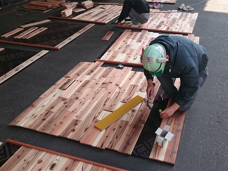 通常、杉板模様の型枠施工は現場での施工が主ですが、